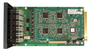 ![]() | Analog Phone 8 Card This card provides 8 analog extension ports for the connection of analog phones. The card can be fitted with an IP Office 500 daughter trunk card, which then uses the additional 4 RJ45 ports for trunk connections. This card accepts one IP 500 trunk daughter card of any type. |